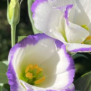 ᰔᩚ ᥫᩣ トルコギキョウ 2番花が咲きました💜🤍ྀི ミントのお花も可愛い 空に翳して…👀💕