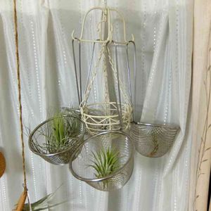 我が家のエアプランツコーナー 100均のインテリアフックに味噌漉し なかなか良いですこれ。