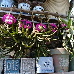 サボテン&エアプランツコーナーに、新たに クラゲ ちゃん吊るしましたー☆ セリアで貝を見つけたので、手持ちのエアプランツで作ってみたよ♡ ハロウィンピックも投入!
