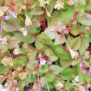 庭に生えていたこの草は何でしょうか? 小さな花がありますがいつ咲いているのか? いつも萎れているような気がします😅 サギゴケや、トキワハゼに似ていますが、もっと小さいです。ウリクサでしょうか?