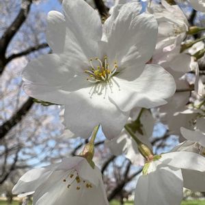 🔰🌸ハクサンハタザクラ(白山旗桜)なる品種のサクラと出会いました。 ハクサンハタザクラはオオシマザクラ系のサトザクラで原木は東京都文京区の白山神社にあった品種です。 原木は1935(昭和10)年に国の天然記念物に指定されましたがのちに枯死し(指定を)解除され現存しておらず現在のサクラは後継樹です。 平安時代、八幡太郎義家が奥州平定の途中、このサクラに旗を立てかけ戦勝祈願したと言う伝説があります。 花は大輪、白色の一重咲きのサクラで花びらの他に旗弁と言う花びらがあるのが特徴的です。 旗弁と呼ばれる花びらがあるサクラを旗桜と言うことから名称は白山神社由来の旗桜であるからだと思われます。 『🏷️太陽がくれた季節a』 『🏷️白輝美人』 『🏷️2025年櫻鐵サクラコレクション』 『🏷️2025年桜さくらサクラリレー』