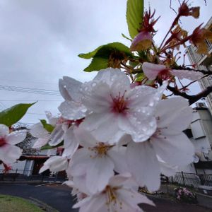 桜🌸シリーズ第12号 今日のお散歩でまだ咲いていました。雨にも負けず、風にも負けず。