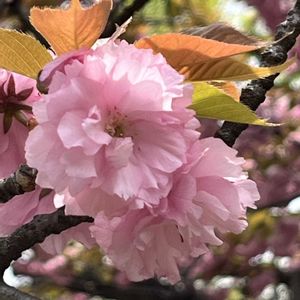 おはようございます、 鬱金桜。一週間前に見た淡いグリーンからピンクに色変わりしていました。 2025桜さくらサクラリレー参加します。