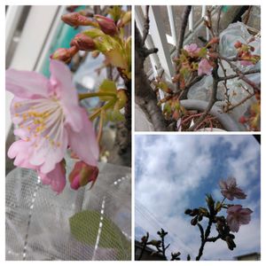 pick total1763 こんにちは🙋🏪迄行く途中にある最寄りの公園にも河津桜🌸が咲いてるか目を向けるとまだでした😂🧐 新たな植物花にも出逢えることなく ハジー(プランター)鉢植えから🏪迄行く前に撮影した今日の様子 ①午前の鉢植え管理河津桜🌸 9輪開花 ② 球根植物4種 ↖️3年生のヒヤシンス球根 ↗️名前不明の葉 ニンニク? 昔も植えた🏷があるが球根と離ればなれ ↘️花芽が発見してる水仙は毎日同じ ↙️ミニアイリスの発芽? 何でゼフィランサスの中に埋没させたのかな 自分でも植え付け場が無かったのかしら🤔 ③開いたオキザリス パープルヘイズ プリムラも変わらなく咲いてる 青空と云うか曇り空と河津桜🌸 編集作業中何かの反応かメッセージ+からの着メロなのか 音が鳴り、中断して投稿をしてしまった