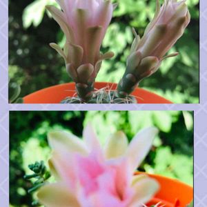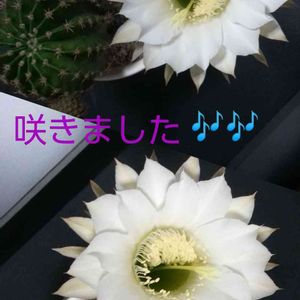 今、お友達から、私が挿し木にしたらと去年上げた 孔雀🌵さん🌿、下から蕾が出て来たと聞いてた🌵から花が咲いたと写真が送られて来ました🎶 🏠のより少しちいさめですが一年で咲くなんて上手ですね👏私まで嬉しくなりました💞🎶🌺