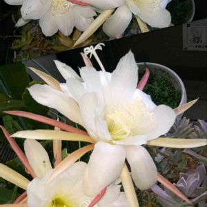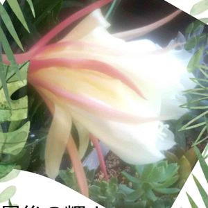 お友達の🏠に10年以上いて、デカクなり周りは👶👶👶ばかりで私が これはバラシテ植え替えて、あげて、と云って沢山の鉢に植えて、貰ってと云われて、3個、1つは私の友達にあげ🏠に来て三年目に花が咲いた!黒いボッボッが汚いから、取り除いていたらそれが蕾でした(笑)今はもう1つだけ有りますので又咲くと思います🎶ちなみに頂いたお友達のは今だ咲かず?不思議ですね💞 今日「27日」はチョイ心配😣事に明るい日差しが見え二重の喜びです🥀 18センチ伸び蕾が咲き8センチあり輝いてて透き通った美しさに感動🥀 有り難う😃です
