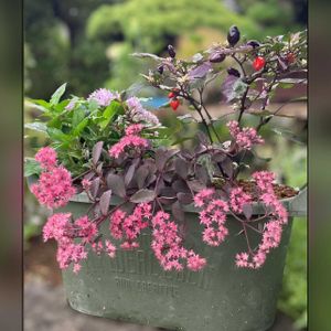 つい先日、ペンタスが終わってしまいリメイクした寄せ植えです。真ん中のアリッサム、ハボタン、シルバーリーフを入れました。かわいかったのですが手前のピンクの葉はこの後数日で枯れてしまいました😭 霜が3日連続で降りて、力尽きてしまいました。 管理が行き届かなくてごめんねー🙇♀️💦 夏の寄せ植えの植物たちには厳し気温なのですね。 また一つ、勉強になりました꒰ ´͈ω`͈꒱