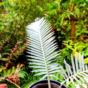 ■Dioon rzedowskii ・ディオーン ルゼドフスキー いいのを見つけてポチッと。植え替え完了です。 最高気温31℃、最低気温19℃ (以下、海外サイトより引用) ディオン・ルゼドフスキーは、メキシコ原産の大きくて背の高いソテツで、高さは15フィート(約4.5メートル)にも達します。成熟すると、長さ5フィート(約1.5メートル)、幅約1フィート(約30センチ)の美しいアーチ状の葉を持ち、長さ6~7インチ(約15~18センチ)の小葉が最大80対あります。小葉は若いうちは綿毛状で、数ヶ月で光沢のある淡緑色になり、革のような質感になります。日当たりの良い場所から明るい日陰の、水はけの良い土壌に植え、時々水やりをしてください。最低でも華氏20度(約-20度)まで耐えます。この植物は庭植えとしても魅力的で、特にサンタバーバラのように他の広葉のディオン属の植物が生育しない地域では重宝します。また、大きな鉢植えとしても美しく育ちます。このソテツは、1980年に新種として初めて記載されました。原産地はメキシコのオアハカ州、サンタドミンゴ川の渓谷で、標高2100~2800フィートの開けた森林にある石灰岩の崖の割れ目に生息しています。より一般的なDioon spinulosumとよく似ていますが、小葉は全縁で鋸歯がありません。また、葉には4~6インチの裸の葉柄があり、この点でDioon meijaeと区別されます。Dioon rzedowskiiは、これら他の広葉のDioon属のソテツよりも耐寒性と直射日光への耐性が高く、これら3種類の広葉のDioon属の中で最も希少です。この学名は、若い頃にメキシコに移住し、メキシコ植物の著名な分類学者および権威となったポーランド生まれの植物学者、Jerzy Rzedowski (1926- )にちなんで付けられました。