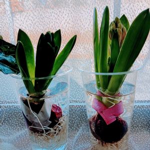 ヒヤシンス🩷と💜を品川駅構内から🎀家から持ってきたお気に入りのクリスマスホーリー🔴