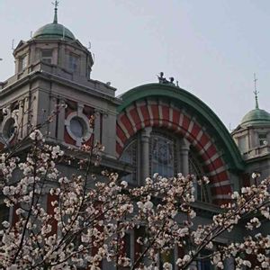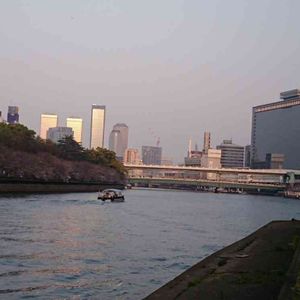 中之島公園🌆 春霞、噴水、三分咲き🤗