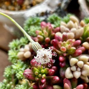 おはようございます🤗 今朝は冷えましたね🥶 ピーチネックレスのお花 くるくるの蕊が可愛いです😍💓 紅稚児のお花❤️ 小さい蕾✨を見つけました❣️ この子💚💗 名前がわかりませんが… いつの間にか 花芽が! びっくりしました🫢 🌿葉っぱにも新芽のような可愛い子がちょこんと居ました♪ 皆様 温かくして過ごしましょう♨️♬