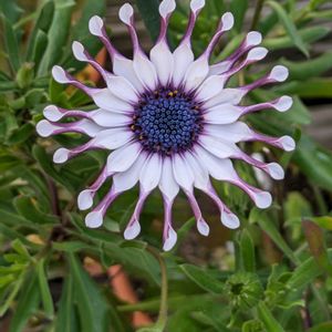 スプーン咲きオステオスが可愛く咲いてきました。 夏越しした苗で間延びしてます🪴 2枚目岩ツツジ💜 3枚目チューリップがやっと咲きました〜🌷 4枚目キンセンカまだまだ咲きます🧡
