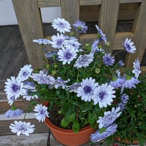 再度登場、挿し芽株のオステオが花盛りですよ~💙 2枚目も同じく挿し芽株の色違いのオステオです。 朝のチューリップも可愛い🌷