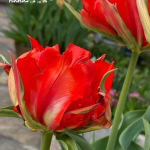チューリップ カバンナさん🌷 昨年掘り上げた球根からのお花です 波打つ花弁がオサレな パーロット咲きの子 今年も開いてくれました💕 4枚目は昨年4月11日にぱちりんこです📷 掘り上げ球根 No.3