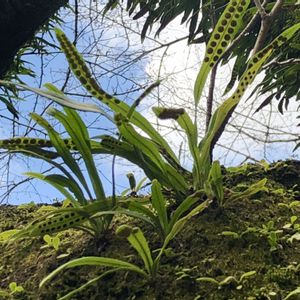 Lepisorus thunbergianus ノキシノブ 斑入りノキシノブです。 これも村上さんとこで購入。 ノキシノブの変わり葉はよく見ますが斑入りとか珍しいなと思ってたのですが、まぁノキシノブを育ててる人なんて少なそうですし出回らないのでしょう。 あとは花物セッコクやデンドロを安くして頂き6鉢ほど買ったのですが花が咲いてなく写真映えしないので割愛( ̄∀ ̄)