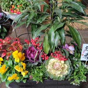 初詣の神社とお寺のお花 ハボタンとパンジー ハボタン アブラナ科アブラナ属 多年草 園芸植物として鮮やかな葉を観賞するが、観葉植物より一年草の草花として扱われることが多い。