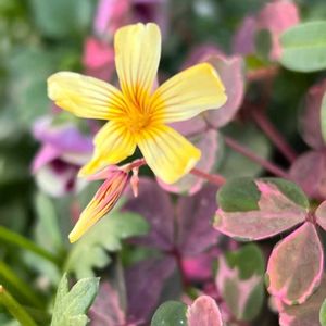 おはようございます☀️ 今朝のお花は オキザリス 雅 🌼 寄せ植えの中に入れたカラーリーフ ピンクの葉っぱに黄色いお花 よく見ないとお花が咲いてるのに気づきません😅 可愛いです(๑•ᴗ•๑)