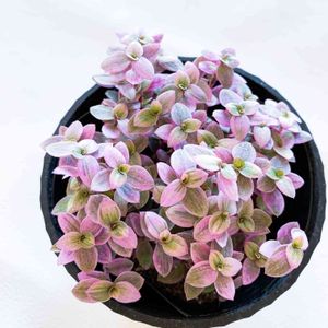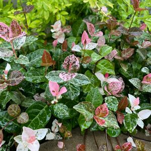 ガーデンヒポエステスピッピ ピンク ピンクの葉っぱが可愛くて惹かれて💕 寄せ植えにして、それだけで満足なのに なんと茎の裏側にお花が咲きました💜 ひっそりと咲いてる姿が謙虚に見えて 健気で奥ゆかしささえ感じました💞 裏から撮ったので葉っぱは透かしのように 見えますが、表側はピンク色です💖