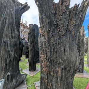 ①文明の森 6500年前の古代の森 チェコで発見 ②アフリカマリの猿の彫像 ③マリのカメレオンの仮面 ④マリドゴン族のドア 模様の一つ一つに意味があり、スマホ片手に説明してもらったのに、尖っているのが女性を表すことしか覚えていない。 ⑤大屋根リンクから