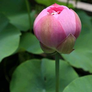 ハス「寿星桃」2番花の開花初日が咲き終わり一旦閉じた姿です。 名前にある通り……桃……型ですね(笑) (*´ω`*)