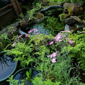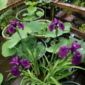 ①ハス 花芽の成長具合がいい感じです!日々伸び続けてます♪ ②ナガバミズアオイ(ポンテデリアコルダータ)が開花しました!ビオトープに水辺の花♪ ③相変わらず美しいノハナショウブ♪ツボミもあと少しだけあります♪ ④手前のミニミニ農園が秋までお休みに入ったのでスイレンやらハスの予備やら集結しました(笑) 庭の半日だけ日が当たるゾーンはもうギュウギュウです💦 (; ・`ω・´)