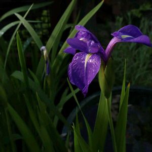 雨上がりの朝 カキツバタ「天の釣り船」が咲きました♪ まだ閉じてる傘が数本あります(笑) 明日咲いてそうです♪ (*´ω`*)