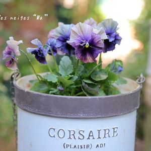 神戸べっぴんさんシリーズ パンジー『水織音』 『みはなだ』や『青の幻想』とは また違った雰囲気を持つ水織音 敢えて表してみるなら…🤔 “虹系パンジー”?! ブルーに溶け合う褐色の色合い 少し厚めのくしゅっとした弁先が個性的 クールな印象のシルバーのブリキに単植してみました これから、どんな色変化を魅せてくれるだろうか… 期待は大きい(ღ˘ㅂ˘ღ)🎶✨