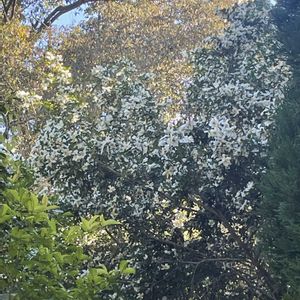 ①②③ サザンカ 山茶花 (原種) ツバキ科 おはようございます サザンカが満開でした🤍🤍🤍🌳 高知市はサザンカの北限です🤍🌳 急坂の途中に有ります😅💦 手前に杉が有り全景が見えません💦 昨年は南園から上がって行き、近くまで行ってみましたが、背が高く近すぎるとかえって写せません💦 ひと枝だけ垂れ下がってましたのでパチリでしたよ🤍😍 牧野植物園 11/23 ②③ 2024年11/24 🏷 今日のお花 サザンカ