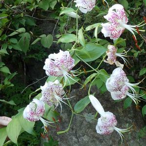GS仲間にで教えて頂いた、高知に自生して咲く花・タキユリ。 カノコユリにとてもよく似ていますが、花がやや小さめ。崖や石垣に垂れ下がるように咲くようです。 高知では、崖をタキと言うことがあるので、こんな名前がついたとか・・・。 モネの庭ではもう終わっていましたが、牧野植物園では、あちこち、いっぱい咲いていました。 2枚目のように、白や濃いピンク色のタキユリもあるみたいです。