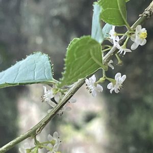 ①② ウメモドキ 梅擬 モチノキ科 本州、四国、九州、中国 山中の湿地に生える落葉低木 雌雄異株、雄花序は5〜20個、雌花序は2〜4個の花をつける 和名は梅の葉に似ている事による 牧野植物園 5/25 おはようございます ウメモドキは実を付けると赤い可愛い実が目立ってますが、花は初めての出会いでした⚪️💚 雌花序には真ん中に丸いものがあるという事です💕 こちらは見えて無いので雄花序ですと画夢さんに教えてもらいましたよ💓 🏷 木曜日は木に参加します