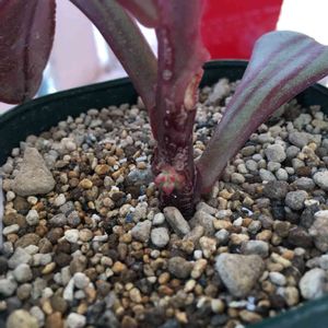 おはようございます✩°。⋆⸜(* ॑꒳ ॑* )⸝ 今日も晴れ〜⁽⁽٩(๑˃̶͈̀ ᗨ ˂̶͈́)۶⁾⁾ 晴天続きで嬉しいです❤ 今日のpicは 紅司…の赤ちゃん❤ 実はこの子はHCで狩ってきたのですが 売り場に置いてる時に既にひょろひょろ〜と長〜い棒の様に徒長しちゃってて(^ω^;) 可愛そうな姿➕帰ってよく良く見たら大量のカイガラムシ… と、悲惨な状態でしたが 徒長しちゃったものはカットし カイガラムシ大量のとこはオルトラン風呂に浸けと 何気に頑張ってお世話をしておりました(❁ᴗ͈ˬᴗ͈) 先日の雨の時にこの子にも少し雨水が当たるように置いて〜 そしたら昨日見た時に子株が❤ ずっと茎がボコボコになるだけでいつも残念だったけど今回こそは子株を出してくれてました!(゚∀゚ノノ"☆パチパチパチ★ あ、ちなみに カットした頭側の部分は既に地植えエリアでイキイキしております(´ω`*) 早く大きくなぁれ〜❤