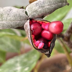 熟すと……… 袋果が割れて 中の種子が現れます🎶 種子は 瑠璃色を帯びた黒 赤いのは 未熟な種子です。 山芍薬(やましゃくやく) ボタン科