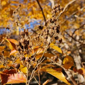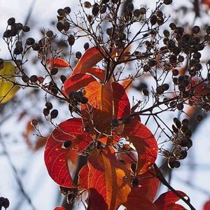 シマサルスベリ 島百日紅 ミソハギ科 落葉高木 おはようございます 牧野植物園のシンボルツリー🌳 綺麗に色づいてます😍 白い実も見えてます⚪️🥰 いつも写したくなる木です💓 🏷 木曜日は木に参加します