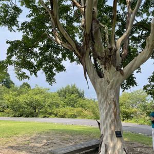 シマサルスベリ 島百日紅 琉球、台湾、中国大陸の亜熱帯に分布 ミソハギ科 落葉高木 日本には屋久島、種子島、南九州に分布するシマサルスベリと屋久島特産のヤクシマサルスベリがある 花期 7月〜8月 白い花を円錐花序につける 材皮は赤褐色ではげやすく、なめらかな幹肌がよく目立つ 牧野植物園シンボルツリーとして1999年に植えられる 牧野植物園 7/9 おはようございます いつもの牧野植物園のシマサルスベリです🤍🌳 樹皮が丁度剥がれてました🌳😍 皮が剥がれるのは夏だけですかとの質問に、夏は成長が大きいからだと答えてました🌳 幹は赤褐色と言ってもかなり白っぽいです🤍🌳 ヤクシマサルスベリは幹が赤っぽいです🌳 先生は幹の色が違うだけなのでわざわざ名前を変えなくてもと言ってましたよ🌳 園内にはヤクシマサルスベリも植えられてます🌳 🏷 木曜日は木にに参加します 🏷 われら樹木探検隊に参加します