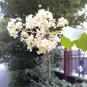 シマサルスベリ 近くの公園で咲いていました。 普通のサルスベリよりも葉は大きいですが、お花は小さいです。 小さくて真っ白なお花が涼しげな感じです。