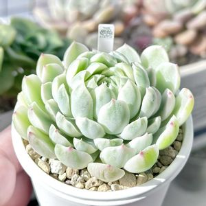 先日少し紹介した『エレガンス錦』をお迎えしました。 中心がアヒル口ではなく 葉先も透明感が無いので やっぱり『メキシカンスノーボール錦』ですね。