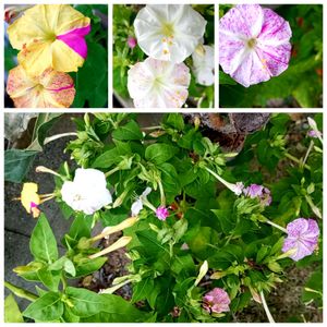 今日のオシロイバナ💐 ベスト5🤍💛♥️🤍 花壇の♥️🤍は毎日無数に咲いていますが、他には庭の3色が少し咲いているだけです😅 混色のオシロイバナは毎日発色が違うので、夕方の定期観察が楽しみです😊 個人的には、アイコンに使っている2024年のものが気に入っているのですが、それを超えるものが出てきてくれることを期待しています💖