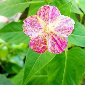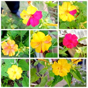 今日咲いていたオシロイバナ赤と黄色の混色♥️💛 同じ枝から混ざった♥️💛 絞りの💛♥️ ♥️だけ 💛だけ みごとに混ざっています。 ほぼ毎日このパターン😀