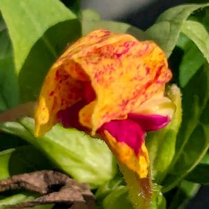 今日も一つ咲いた3色っぽい絞り模様🙀 判定はいかに🧐🧐 赤は明らか😀 白と黄色は? 見ていただいた方どうですか🙇