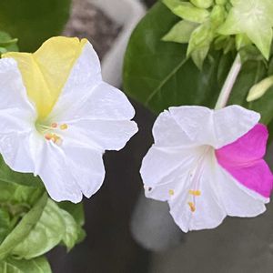🏷️オシロイバナ2025 🏷️オシロイバナ愛好家友の会 🏷️オシロイバナいっぱい運動 今日の4時花… オシロイバナ 5時半に…パシャ🤳✨️✨️ ❤️赤🤍白💛黄🌿 3色咲きました!! 来年は…3色混♡の花が 咲くのねぇ〜…✨️✨️ 🤗💞💞❤️🤍💛🌿 😊✌️楽しみ〜!!😍 🏷️しべ(蕊)美人♪ 🏷️モダンな木曜日