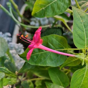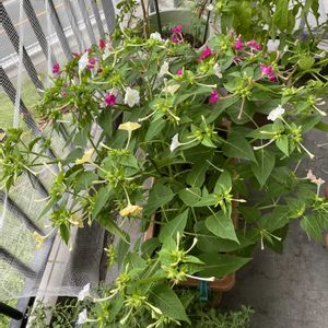 おはようございます 昼間のベランダは30度超え 新しいオシロイバナ株はよく咲いています 2枚目も同じ株から咲いています💛🩷