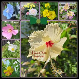 花友… 🏷️PONJIさんに 今日出逢った… 蕊の長ぁ〜い…🌺💛🤍💛ハイビスカスさん… オシロイバナ アメリカンブルー 芙蓉 ランタナ マツバボタン… 薔薇 キク 朝顔… の花で…🛐⚛️ 御冥福をお祈り致します …ありがとう♡💐