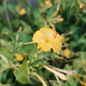 おはようございます 珍しく3色のオシロイバナが1つ咲きました 新しい株はレモン色一色です🩷🤍💛