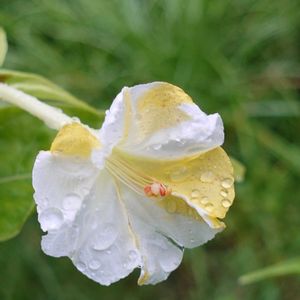 以前花ともさんから貰ったオシロイバナの黄花と記された種から 先日までは真っ白🤍ちゃんだけしか咲いてこなかったのに😓 なんと〜~~😍😍😍😍 黄色&白のお花が咲いてきました🥳 先程急に降った☔️に濡れて(*´꒳`*)~❀ 素敵すぎますぅ٩(ˊᗜˋ*)و 花友さん( *´艸`) ありがとう😘😘😘😘 ④ こちらはいつもの子🩷 み〜んな良い☝️