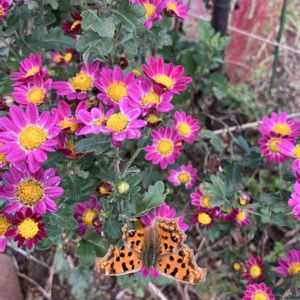 こんばんは⭐️ 風の強い日になりました🌪️ ①小菊にヒヨウモンチヨウ 羽根がボロボロ もう最後の時なのね🦋 一生懸命生きたのね ②黄菊 食用菊です🌼 ③お米を買いに農家に🧑🌾 柿とキウイフルーツを頂きました 林檎を買って来ないとネ🍎 キウイと一緒にしておくと良い ④生姜をふた株 掘り上げました まだ4株ある🫚 まずは紅生姜作りかなぁ ヒヨウモンチヨウならぬ キタテハでした🦋 11月4日✒️