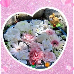 🏷️ブロック祭り 参加します 今月は、うさぎ🐰ちゃんで花手水 庭の花とコラージュ😆 今週も宜しくお願いします(o^・^o) 🏷️コラージュして遊ぼ♡🏷️コラージュ仲間達 参加します