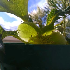 −5.7℃🌅/2℃⛅️ クリスマスローズ ステルニー スーパーシルバー①② いつのまにか咲いてました💚✨ 葉っぱと同じ色だし、あんまり下向きで気づかなかった😅 ステルニー’sとセルリアは、今日も寒空の日光浴⊹ ࣪ ˖☀ (奥にスキミアとカレンジュラもいます♪)