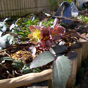 1.9℃🌅/13.2℃☀ クリスマスローズ ステルニー’sを雪どけの花壇(ジューンベリーの下)に植え込みました🌳♪♪ ピンクダイヤモンドは開花宣言🌸🌿① スーパーシルバー、咲いてるお花後ろ向きに植えちゃった😦💧② •————— ♬ —————• •————— ♬ —————• 待機苗を植えたり、、 マルチがわりにしていた落ち葉を拾ったり、、 軒下🪴を表に並べたり、、 いろいろお庭ごとしました☀