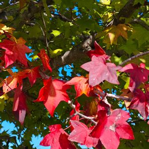 公園のモミジバフウが色づいて来ました。 場所によって進み具合に差があります。