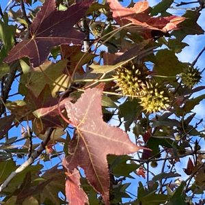 おはようございます😃 昨日は午後から木枯らし1号も吹いたし朝の気温も1桁になって秋も深まってきましたね。 短くなった秋を楽しまなくっちゃ🍂 我が家のあたりの秋の色 ①アメリカフウ(モミジバフウ)✨ 緑と黄色の葉が綺麗でそこに真っ黒クロスケのような可愛い実がたくさんぶら下がっています。 ②このアメリカフウの並木は毎年の紅葉🍁が綺麗で散歩の楽しみです♪ ③公園の木の下にはドングリがいっぱい落ちていて子供たちが拾っているのをよく見かけます😊 ④昨日の風でジニアがみんなこちらを見て写真撮ってと言っているみたいなのでパチリ📸😆 今年は良く咲いてくれました✨